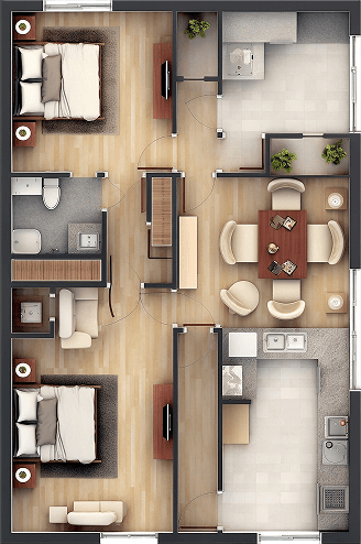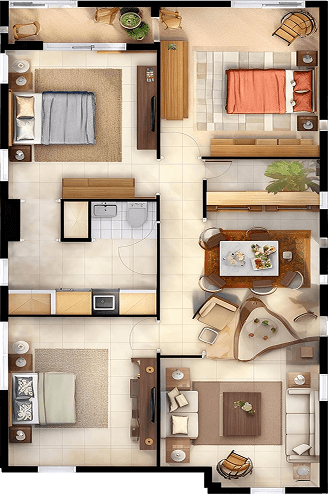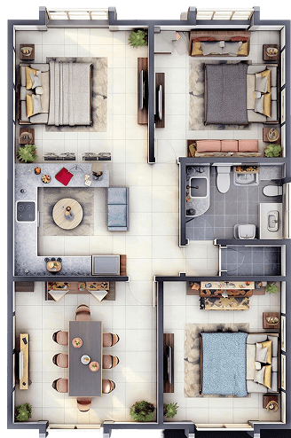 The bedroom is a private retreat—a calm, restful zone meant to restore both body and mind. Typically furnished with a bed, nightstands, and soft lighting, it invites tranquility and a sense of personal comfort.